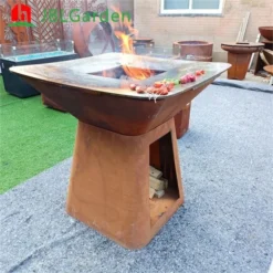 The cook top is made of 10mm carbon steel and the spun bowl is a high grade of corten steel or “weathering” steel. The base is also crafted of 5 pieces of 5mm corten steel and easily pieces together with no tools needed.Uses both wood and / or charcoal